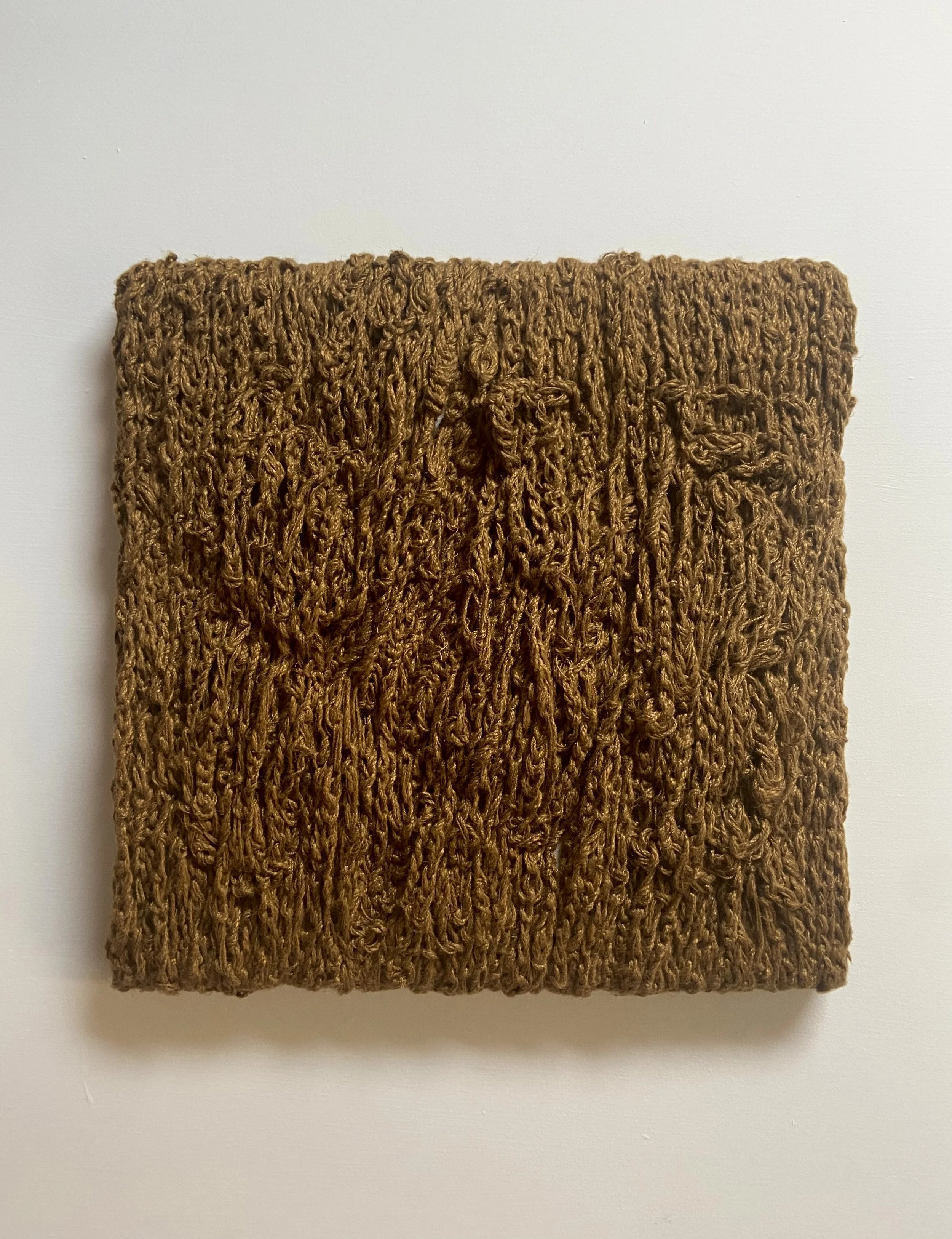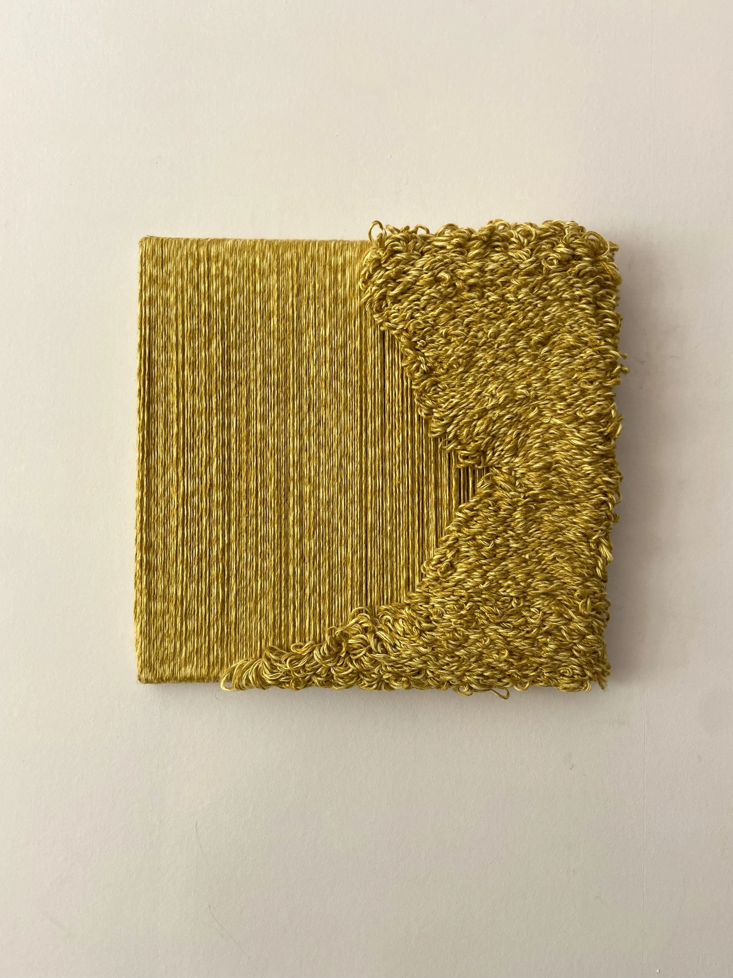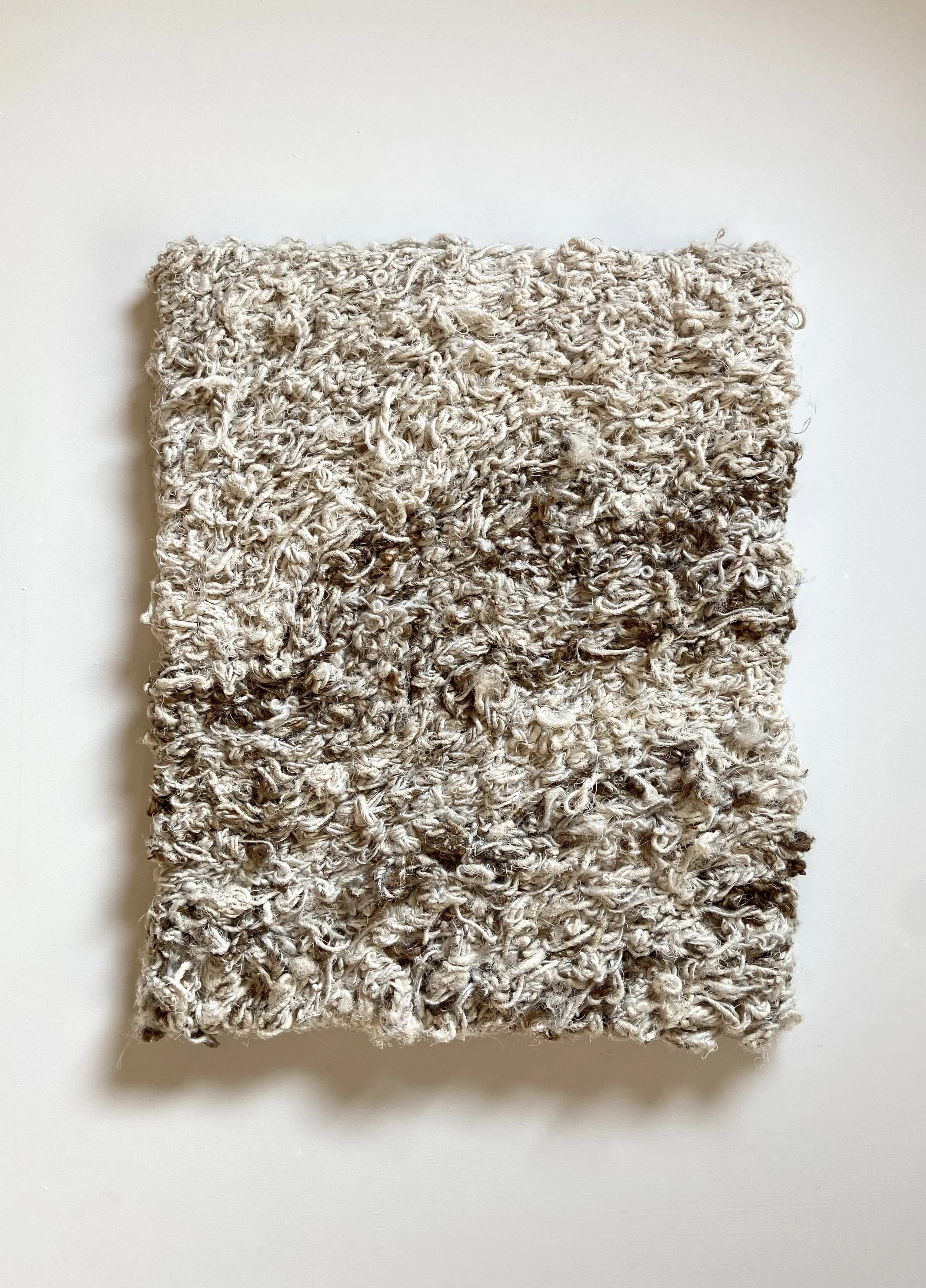 This textile series explores how the qualities of intuition and flow that arise naturally in painting can also emerge in textile work. Inspired by the symbolism of water and rivers as emblems of fluidity, time, and change, the works embrace curvy, organic forms and evolving processes. The focus remains on simplicity and the raw material, while movement and rhythm guide both form and technique, allowing new textures to emerge naturally.